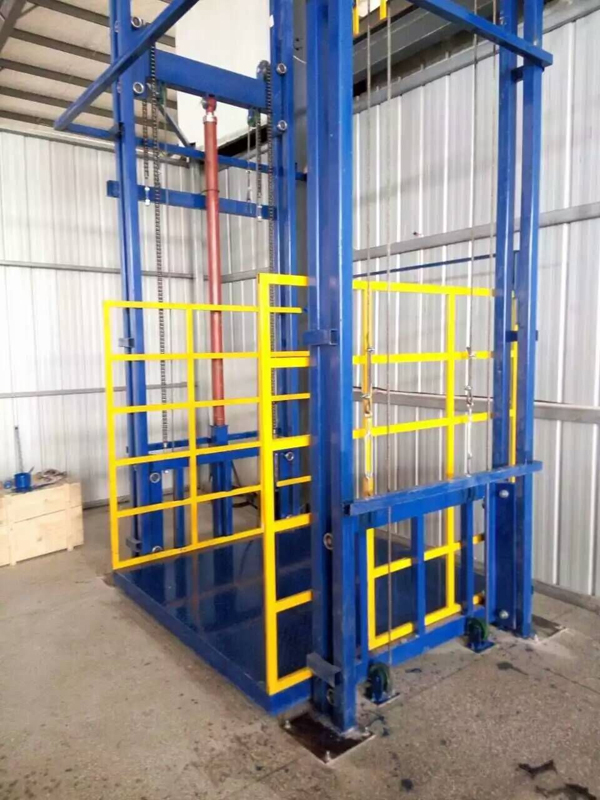 導軌式升降機是一種非剪叉式液壓升降機,用于二層以上工業廠房、餐廳、酒樓貨物運輸,由于低部高度僅150-300mm,適用于不能開挖地坑的工作場所,同時無須上部調點,具有多種形式(單邊、雙邊單油缸,雙邊雙油缸),動作平穩、操作簡單可靠,液壓、電器多種貨物傳輸經濟、輕松。(具體承載力及升高層數、尺寸可根據用戶要求設計制作) 導軌鏈條式液壓升降機、貨物提升平臺主要用各種工作層間貨物上下運送;立體車庫和地下車庫二層以上高樓間、無法開挖地坑場所、頂層高度不能到達要求的場合等比較難解決的狹小空間,導軌鏈條式液壓升降機產品液壓系統設置防墜、上下層門互動連鎖,各樓層和升降臺工作臺面均可設置操作按鈕,實現多點控制。產品結構堅固,承載量大,升降平穩,安裝維護簡單方便,是經濟實用的低樓層間替代電梯的理想貨物輸送設備。 根據導軌鏈條式升降機的安裝環境和使用要求,選擇不同的可選配置,可取得更好的使用效果。