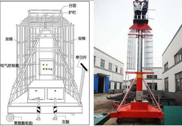 套缸式升降平臺為多級液壓缸直立上升,液壓缸高強度的材質和良好的機械性能,塔形梯狀護架,使升降平臺有更高的穩定性。即使身處50米高空,也能感受其優越的平穩性能。主要用于電力線路、照明電器、高架管道等安裝維護,高空清潔等單人工作的高空作業。主要產品分為:單梯防旋轉、雙梯防旋轉、可傾斜式液壓升降平臺。