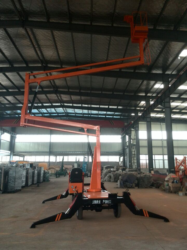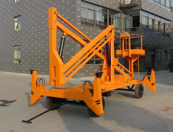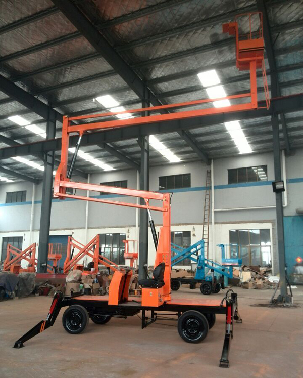 自行曲(折)臂式升降機升高時候是曲折狀態的,升降平臺的結構采用了機電液一體化、可靠性設計和計算機輔助設計等技術,是一種全液壓驅動、自行式專用底盤。突破了以往國內高空作業升降機只能采用汽車或起重機底盤改裝設計的限制。自行曲(折0臂升降機,曲臂式往往體積較小,帶載行駛、作業穩定性好。底盤結構突破了傳統的設計理論和方法,通過優化上車平臺總體布局與載荷分布,減少了重心偏移。采用獨特的大角度后仰式鉸點結構,合理設置多種配重模塊,有效地平衡了工作力矩。采用H型變截面復合箱梁剮性車架和高負荷橡膠輪胎,增加了底盤整體剛度,保證了整機行駛、作業過程的穩定性實現了高空作業升降機帶載行駛的功能。通過大臂前端托架可以快速安裝舉升裝置或載人平臺,實現物料舉升、起重吊裝和載人高空作業等功能同時為擴展作業裝置以及各種工作裝置的快速切換提供了接口。設計的三維旋轉托舉裝置,既能夠自動保持被舉升物料的姿態,又可以實現舉升物料在空間內任意高度、任意位置和任意方向的調整要求,速度控制精確靈敏,微動性能好,滿足了大型洞庫內高空作業與通風管道安裝的要求。