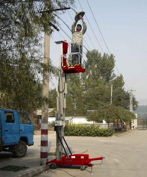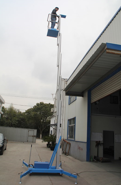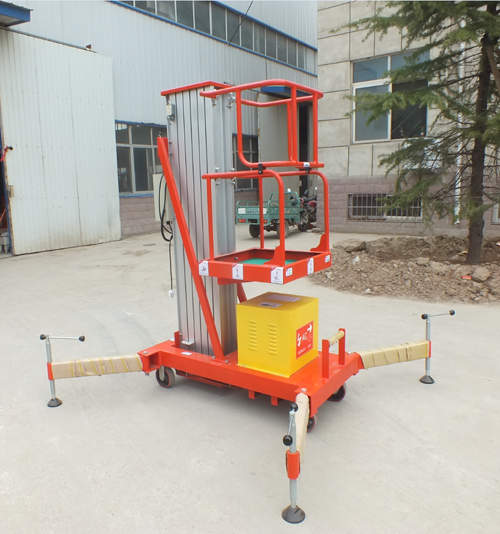 鋁合金升降機升高高度在8米以下為單跪柱式,在10米到14米之間為雙跪柱式,15米到18米之間則升為三跪柱式或四跪柱式。通過升降平臺跪柱的增加達到設備在高空的穩定性,保證作業安全,減小設備晃動的幅度,使高空作業更加平穩。合金式液壓升降平臺下降速度可自調,而且設備設有手動下降裝置,保證在停電時的正常工作;設有應急停運按鈕;臺面設有防滑絕緣扣板,更換方便,易于清潔,維修方便,有效保障工作安全可靠,保證使用人員的安全。外形美觀,整體輕盈,能在小的空間內發揮好的舉升功能,也可根據客戶要求加裝蓄電池以滿足客戶工作場地的不同要求。