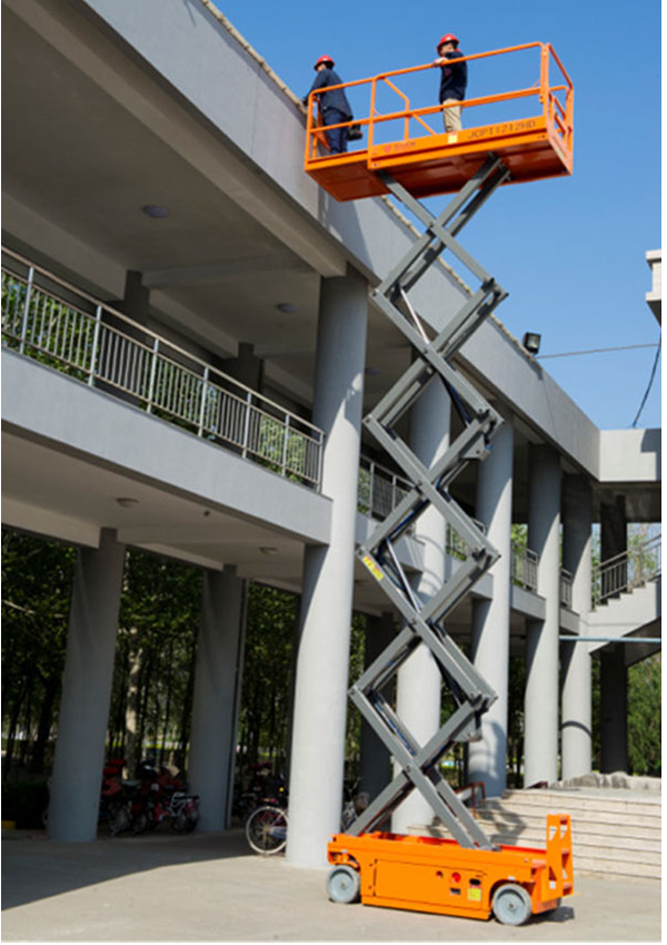 自行剪叉式升降機具有自動行走功能,整機一體式設計,內置電瓶電源,滿足在不同工作狀態下,不需外接電源,不需外來動力牽引即可升降自如,而設備的行走轉向也只需一人便可完成。操作人員只需掌握好設備前的控制手柄即可完成設備前進、后退、轉向、快、慢速行走和上下等動作。自行剪叉式升降平臺移動靈活,操作方便、省工、省力令高空作業更方便快捷,是現代企業高效安全生產之理想高空作業設備。