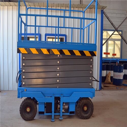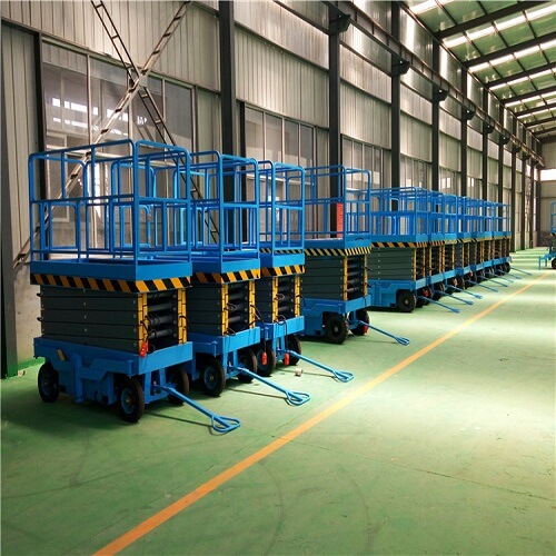移動剪叉式升降平臺主要技術特點:臺面鋼板折彎、底架及剪叉結構山鋼定做高強度矩形管材; 標準冷彎槽做道軌,使用尼龍滑塊做導軌輪,接觸面大,升降平穩,晃動小;液壓油缸  內置防爆閥(防止油管斷裂,平臺失速下降),采用進口密封圈,經久耐用,不泄露;雙層鋼網高壓油管;升降機專用液壓泵站,加裝應急下降閥,平臺斷電可手動控制 下降,內置溢流閥,可防止上行運動時系統壓力過高,起到超載保護功能;充氣橡膠輪胎;電路電器、接觸器羅列連接,加裝熱過載保護,缺相保護等安全保護功能;電動上、下電動控制,控制按鈕盒加裝急停按鈕,以最大限度保障財產及人身安全,各操作部分使用24V安全控制電壓;軸銷圓鋼配做,調質處理;拋丸、噴砂 除銹處理,除去鋼結構構件表面的銹蝕及焊接飛濺,能使鋼構件表面產生一定程度的凹凸不平的效果,增大粉末的附著力;使用靜電粉末噴涂;涂層外觀質量優異,附著力及機械強度強,色澤亮度高,經久不褪色。