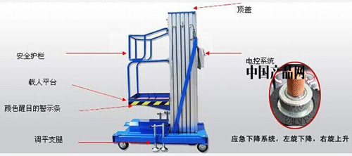 鋁合金升降機系列產品為多為室內型,廣泛適用于星級酒店,大型超市等各行業大廳、廠房內的高空作業,具有升降平衡,操作方便,能進入一般門廳,可隨意進出電梯且耗電少、無污染、工作時不傷地面,可用于貼墻工作及探出作業,工作無死角。鋁合金式液壓升降平臺產品采用鋁合金材料,動力經過液壓泵站帶動鏈條傳動,結構合理設計緊湊。鋁合金升降作業平臺根據升高高度分為單柱、雙住、三柱和四柱式,具有造型美觀、體積小、重量輕、升降平穩等優點,并能夠上下操作,升降平臺廣泛用于酒店賓館、車站候車室、機場候機樓、影劇院、展覽館、體育館等場所,是保養機具、油漆裝修、調換燈具、電器、清潔保養等用途的伴侶。