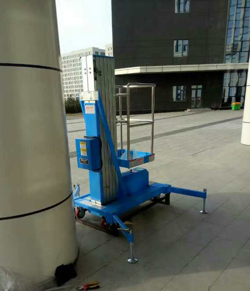 鋁合金升降機升高高度在8米以下為單跪柱式,在10米到14米之間為雙跪柱式,15米到18米之間則升為三跪柱式或四跪柱式。通過升降平臺跪柱的增加達到設備在高空的穩定性,保證作業安全,減小設備晃動的幅度,使高空作業更加平穩。該升降平臺配備了中德合資的液壓泵站,該泵站為壓鑄鋁集成閥塊,結構緊湊,系統壓力16MPa,經過液壓泵站帶動鏈條傳動,結構合理,設計緊湊。鋁合金式液壓升降平臺下降速度可自調,而且設備設有手動下降裝置,保證在停電時的正常工作;設有應急停運按鈕;臺面設有防滑絕緣扣板,更換方便,易于清潔,維修方便,有效保障工作安全可靠,保證使用人員的安全。外形美觀,整體輕盈,能在小的空間內發揮好的舉升功能,也可根據客戶要求加裝蓄電池以滿足客戶工作場地的不同要求。